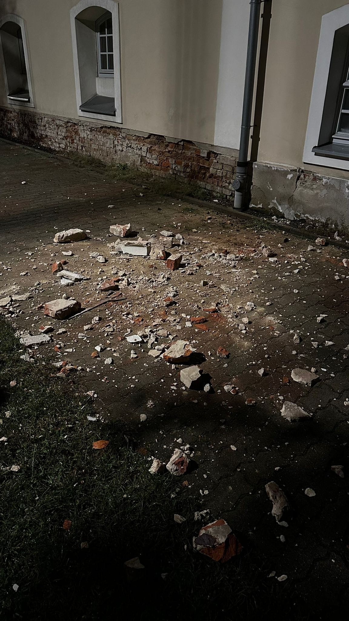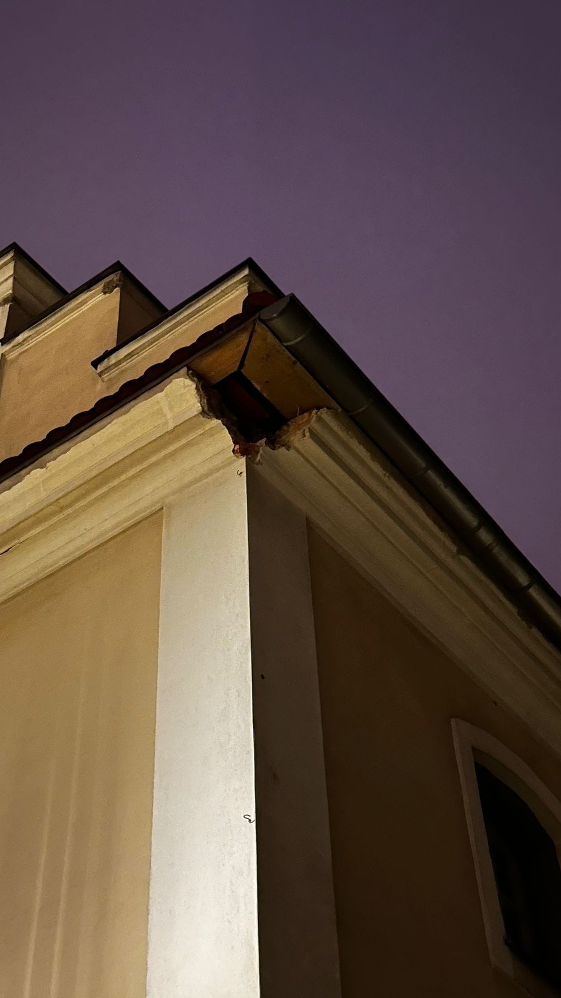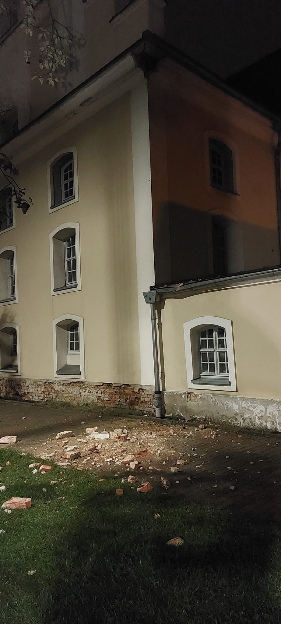 UWAGA! Przy kościele odpadła kotwa łącznikowa muru ceglanego i gzyms o masie powyżej 100 kg na wysokości c.a. 8,00 m, PROSIMY O OSTROŻNOŚĆ!!!