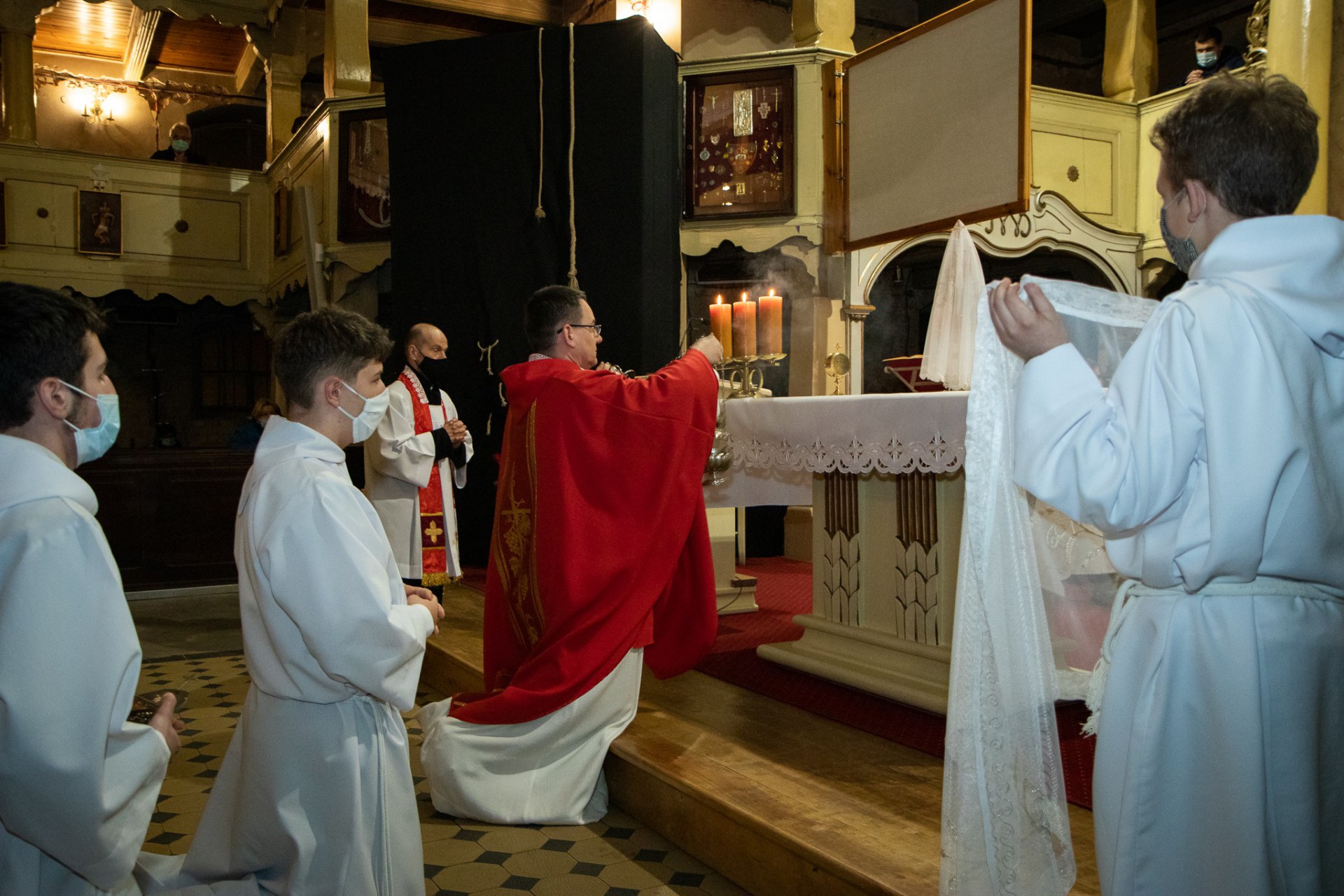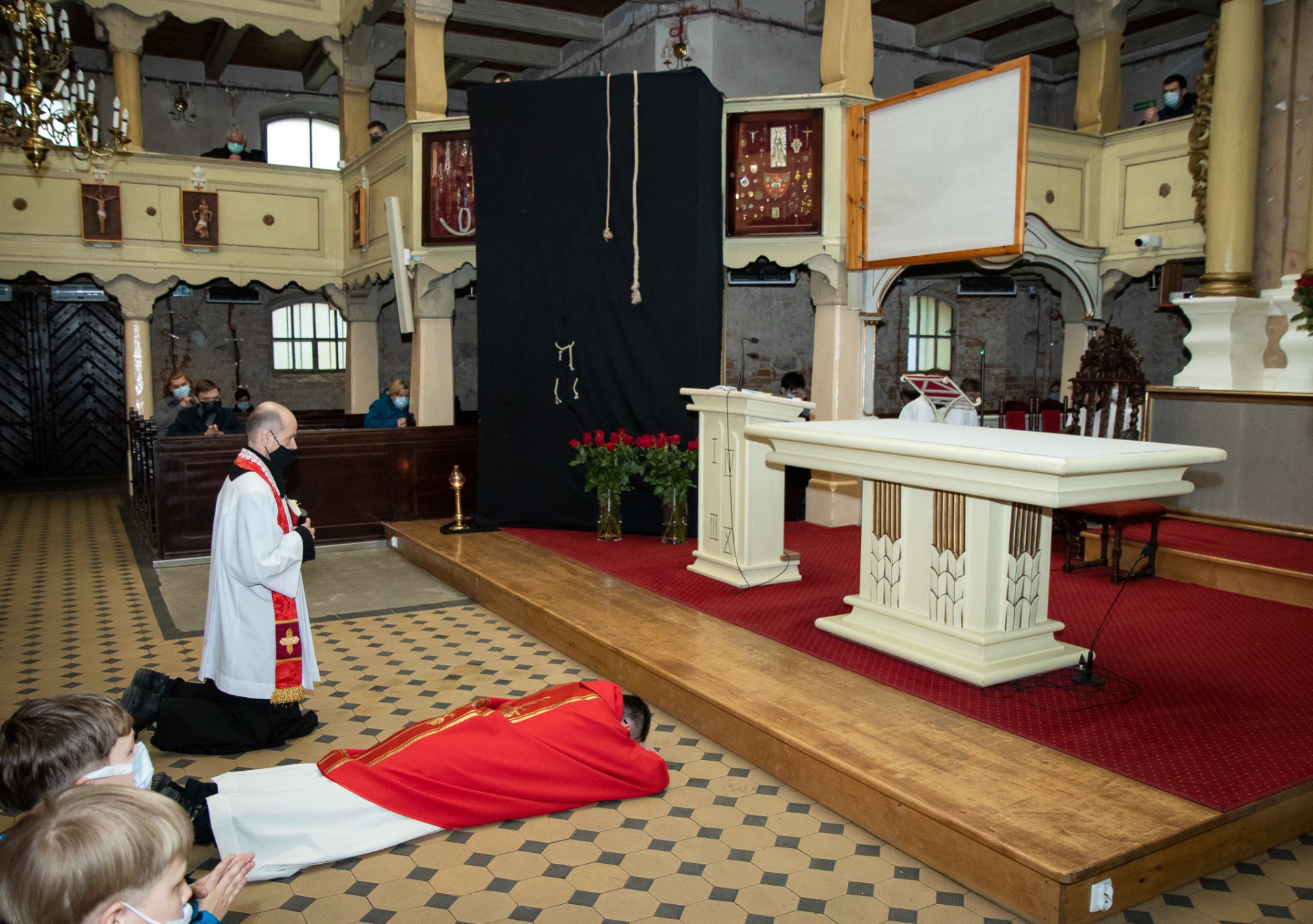 W Wielki Piątek o godz. 19.00 rozpoczęła się Liturgia Męki Pańskiej. Przewodniczył Jej ks. wikariusz Marcin Cabaj. Tradycyjnie rozpoczęło Ją leżenie krzyżem celebransa, na wzór uniżenia Syna Bożego, przyjmującego drogę męki i śmierci dla naszego zbawienia.