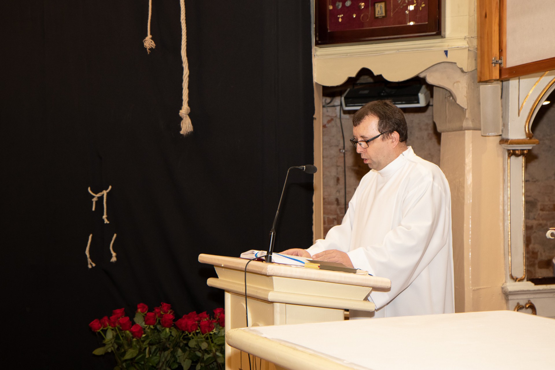 Następnie zabrzmiała liturgia Słowa Bożego z odczytaniem Męki Pana naszego Jezusa Chrystusa wg św. Jana. W kazaniu ks. Marcin ukazał tajemnicę krzyża we współczesnym świecie: