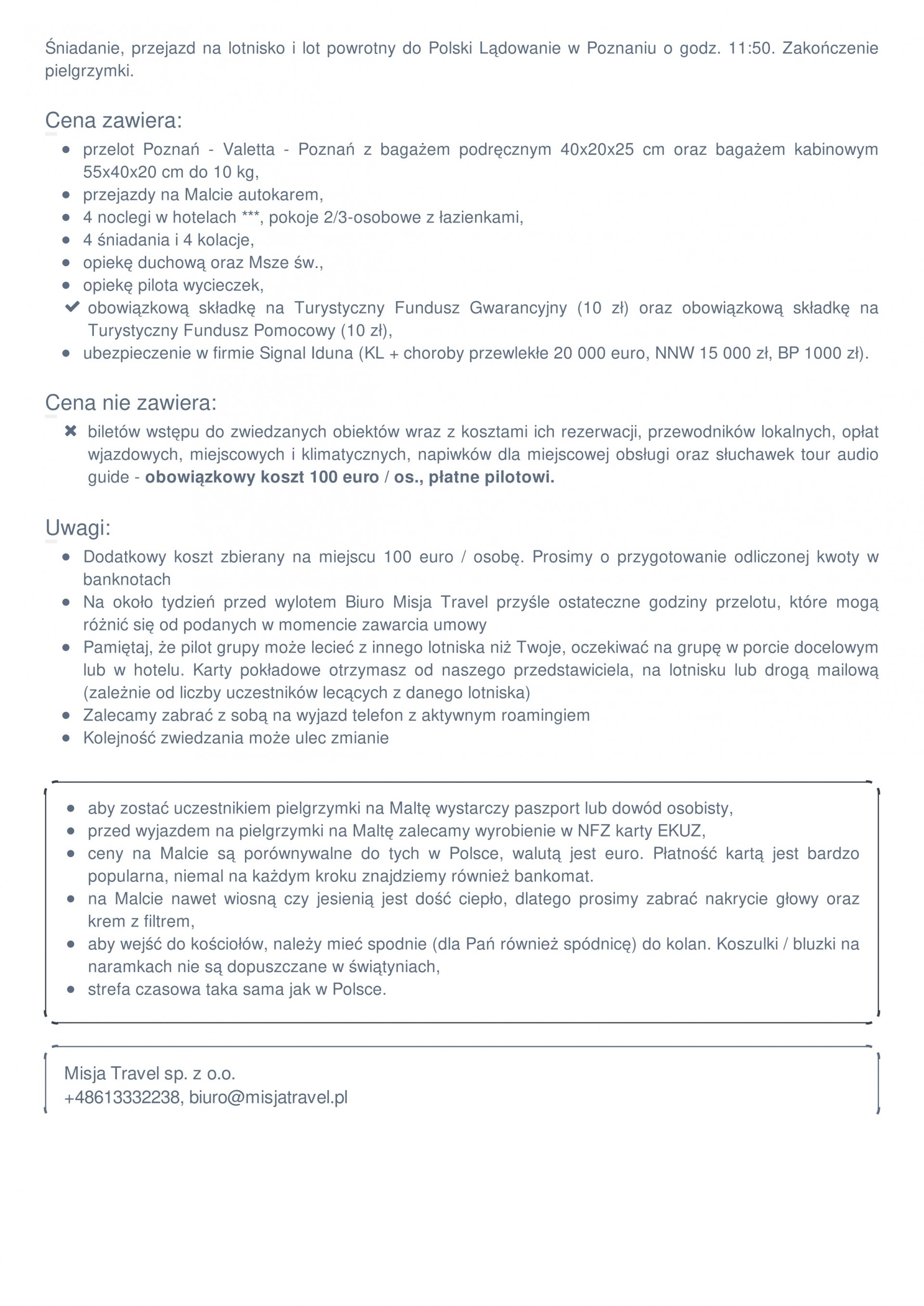 1. Aby zostać uczestnikiem pielgrzymki na Maltę wystarczy paszport lub dowód osobisty,